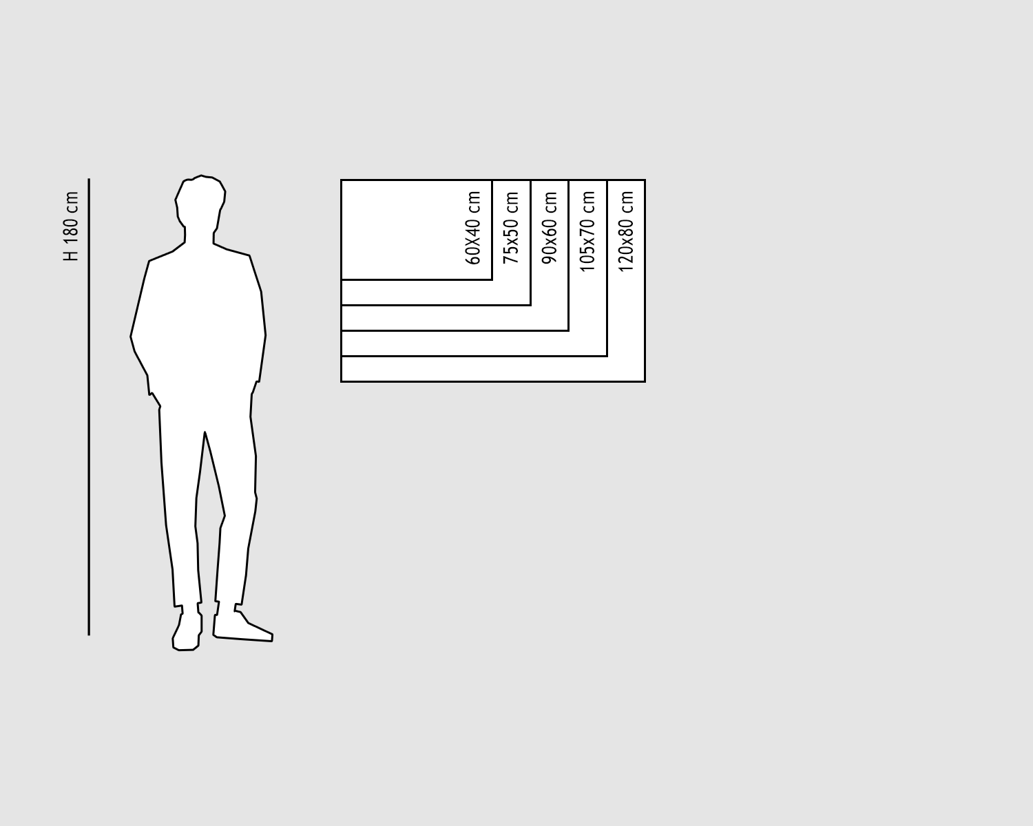Il Dibond in alluminio è pronto per essere appeso. Le guide metalliche sul retro rendono il montaggio a parete facile e sicuro. Nessun gancio visibile, effetto fluttuante e massima attenzione sull'opera d'arte.
