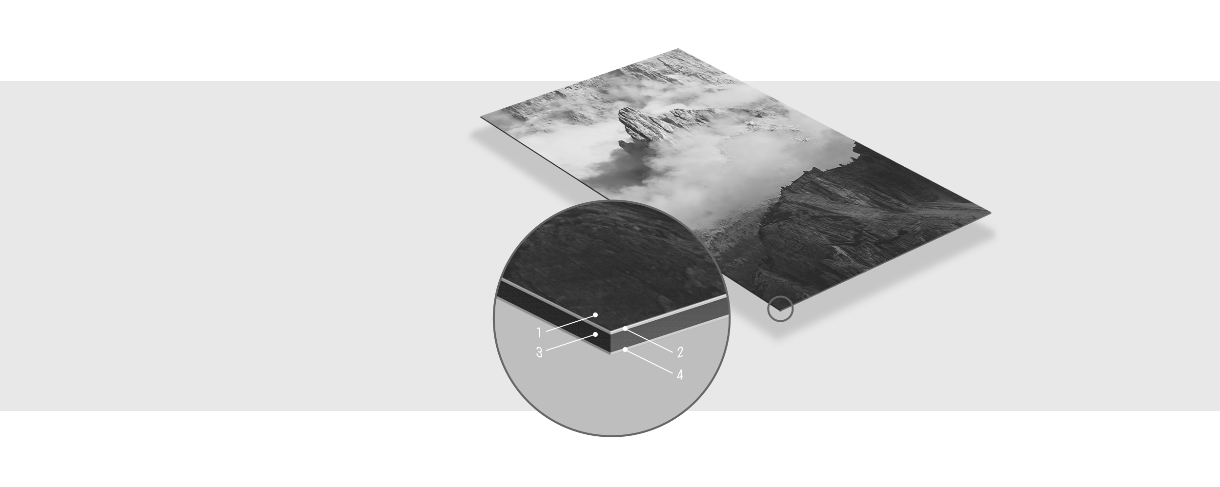 Il Dibond è un supporto in alluminio di alta qualità, estremamente robusto, leggero e piatto. Senza cornice e vetro, è il miglior modo per presentare stampe d'arte così pulite e pure.