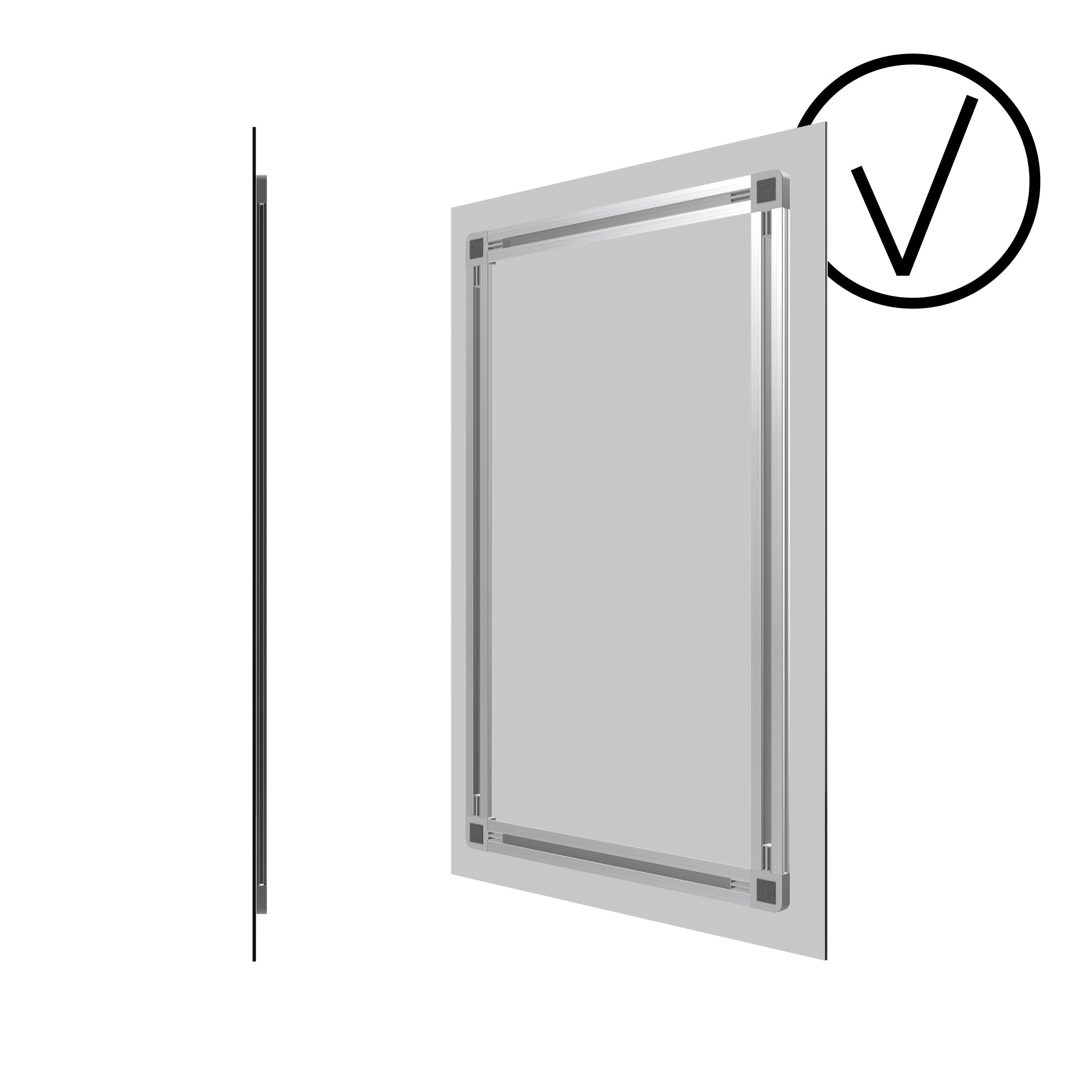 Il sistema di sospensione è costituito da un controtelaio in metallo: leggero, resistente ed estremamente versatile. Il binario di 1 cm di spessore mantiene il pannello staccato dalla parete, creando un piacevole effetto di leggerezza.